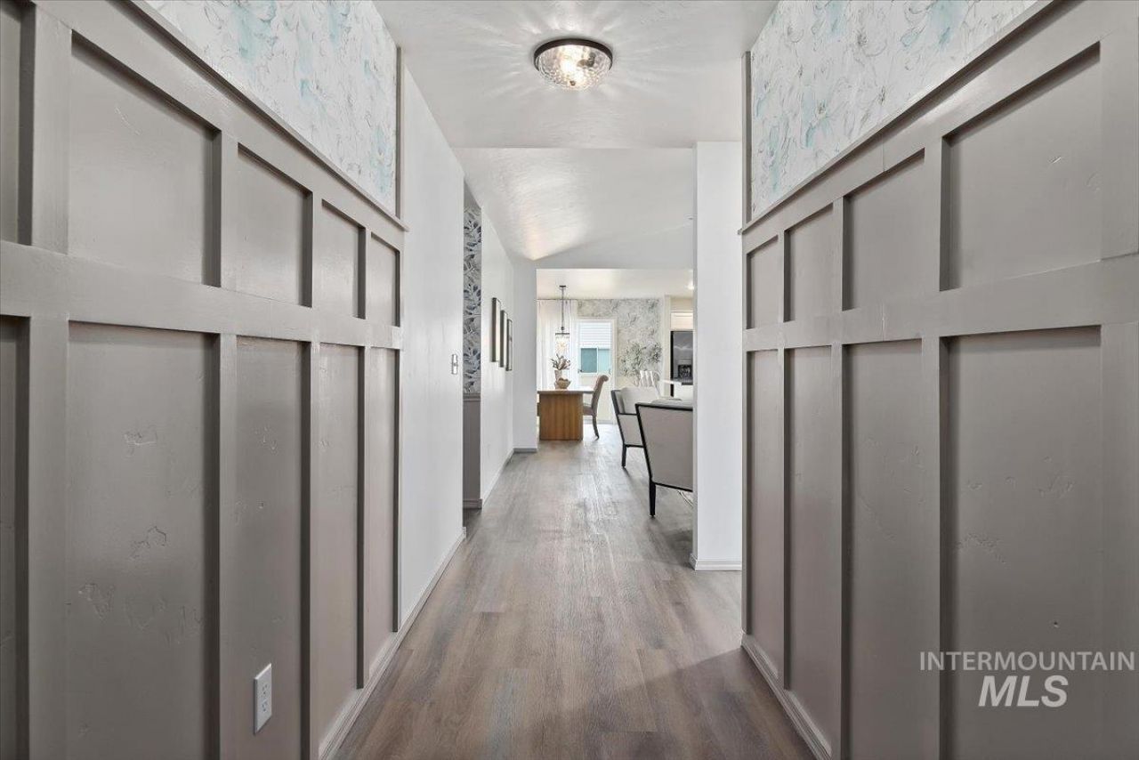 STOP THE SCROLL?this is a fully reimagined, designer-inspired retreat that captures attention from the moment you walk in! Youre welcomed by a stunning board and batten entry, floral wallpaper, curated lighting, and a fresh designer color palette that carries throughout. The vaulted living space feels bright, open, and inviting?perfect for entertaining or relaxing at home. The kitchen blends style and function with a modern backsplash, updated hardware, abundant cabinetry, and an island ideal for morning coffee or casual dining. The dining area shines with a statement chandelier, adding warmth and elegance. Enjoy a seamless single-level layout with 3 bedrooms and 2 bathrooms designed for comfort and flow. The primary suite offers a peaceful escape with floor-to-ceiling drapes, a beautiful color palette, private en-suite bath, and a thoughtfully designed walk-in closet. Even the laundry room stands out with bold design, extra storage, and functionality. Durable LVP flooring runs through the main living areas for style and easy maintenance. Conveniently located with quick freeway access and just minutes to shopping, dining, and entertainment, all within the Vallivue School District. If youve been waiting for a home with true personality, style, and soul?this is the one!